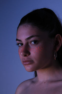 הסט הזה צולם בסטודיו. בסט הזה רציתי להתשמש במה שלמדתי בסט הראשון על הדוגמנית שלי מבחינת האור אולטרה סגול. עליה ניסיתי כל מיני קומבונציות שונות כדי לראות מה יותר עובד ולמה אני מתחברת יותר. בהתחלה שמתי לה אודם אשר זוהר באור אולטרה סגול ולאחר מכן ציירתי לה נמשים עם צבע אשר זוהר באור אולטרה סגול. בסופו של דבר לנמשים הוספתי גם אודם וצבעתי לה את הריסים כדי לראות את הקומבינציה הזו. לאחר שצילמתי ועברתי על התמונות בבית ראיתי שהצבע של הנמשים (ורוד במקור) הצטלם יותר כתמתם בגלל האור אולטרה סגול. כך שכן הייתי צריכה לתקן את זה בעריכה כדי שהנמשים יהיו ורודים ולא כתומים.
